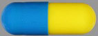 Capsule with blue opaque cap with yellow opaque body imprinted with “B 074” in black ink