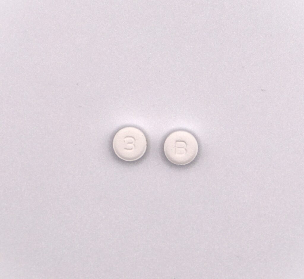 Round, White, Uncoated Tablets. Debossed “B” on one side and “3” on the other side