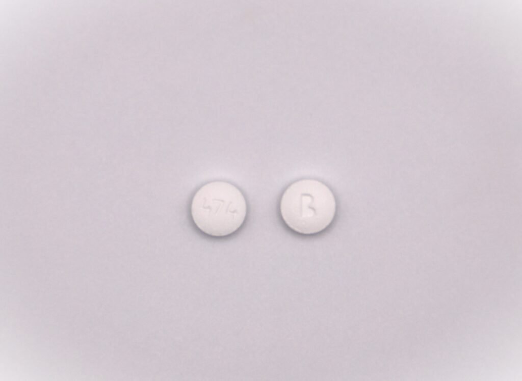 White, convex, coated tablets debossed with “B” on one side and “474” on the other side.