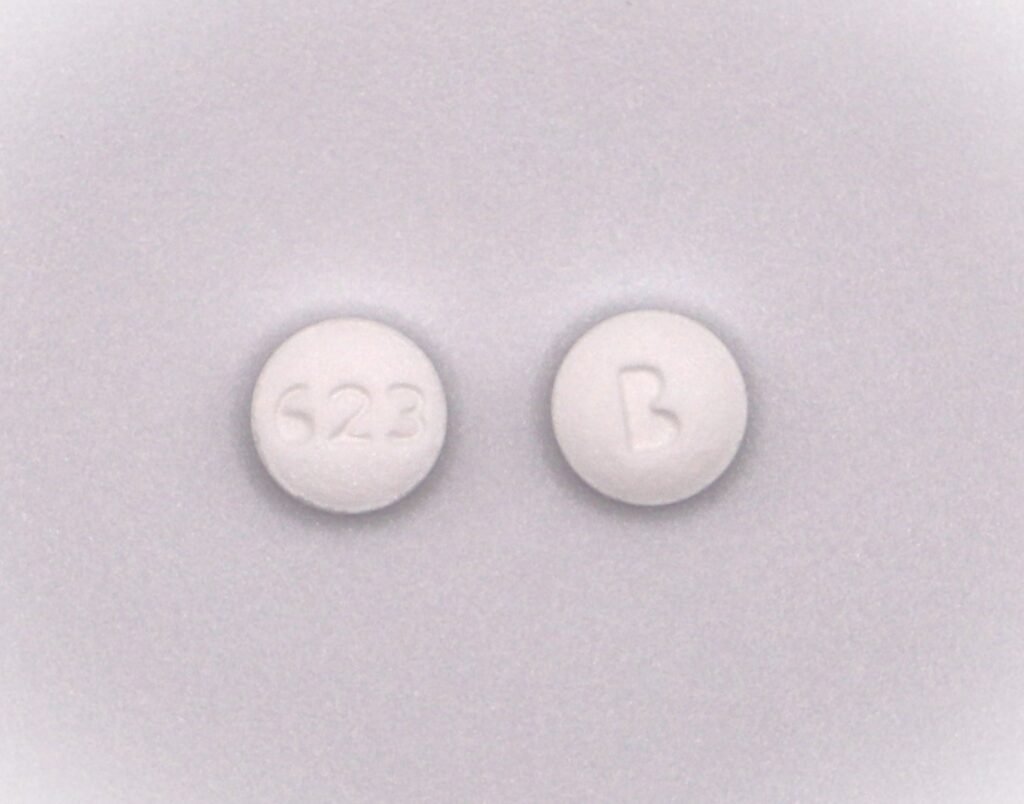 White, convex, coated tablet debossed with “B” on one side and “623” on the other side.