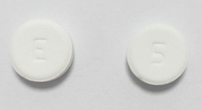 White to off white colored, round, flat tablets, debossed with “5” on one side and “E” on other side