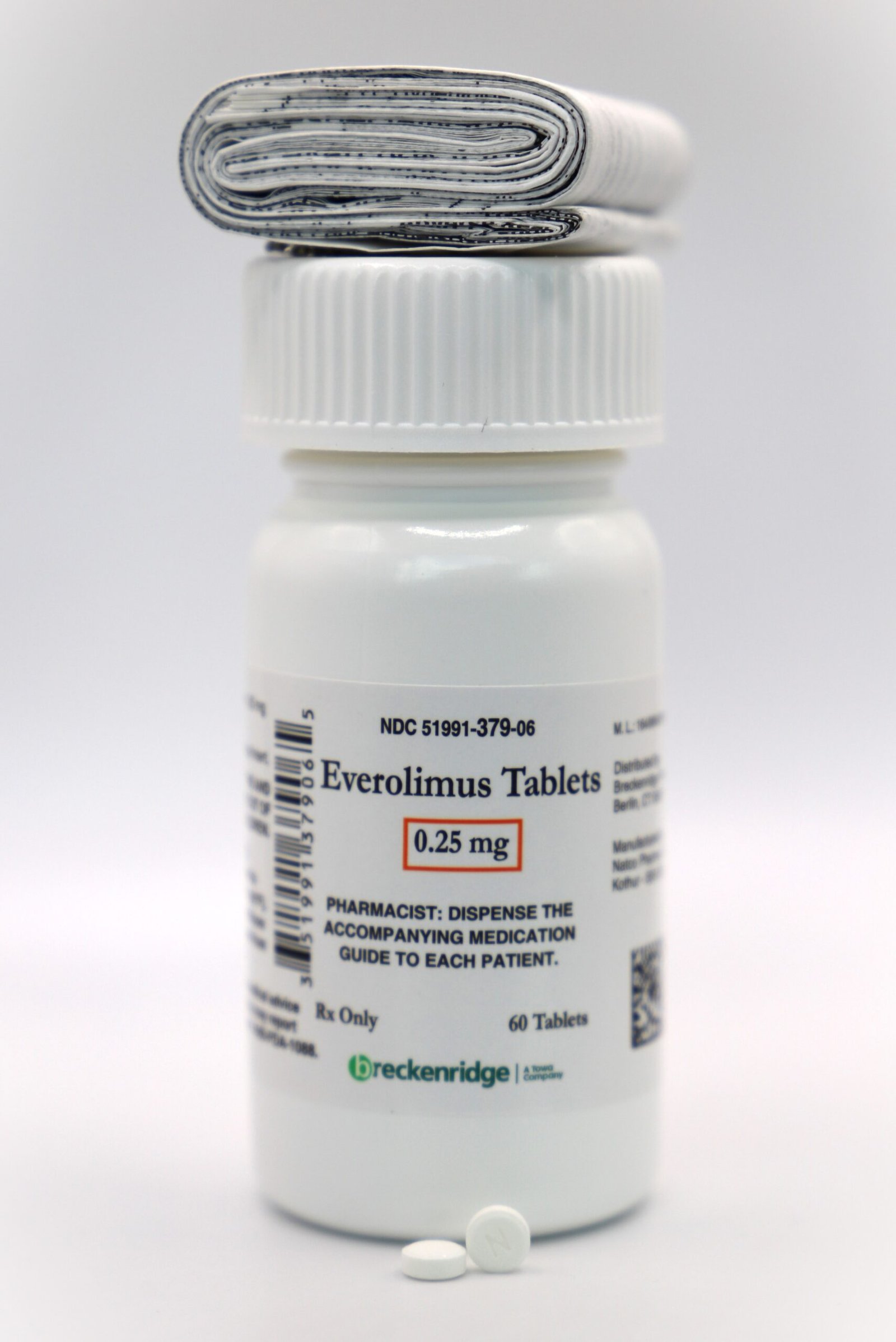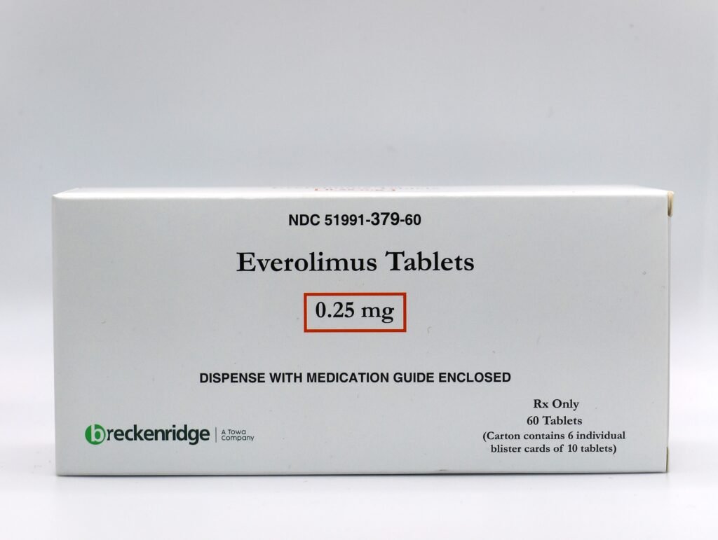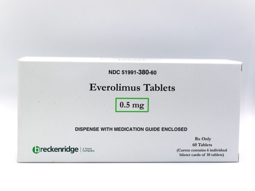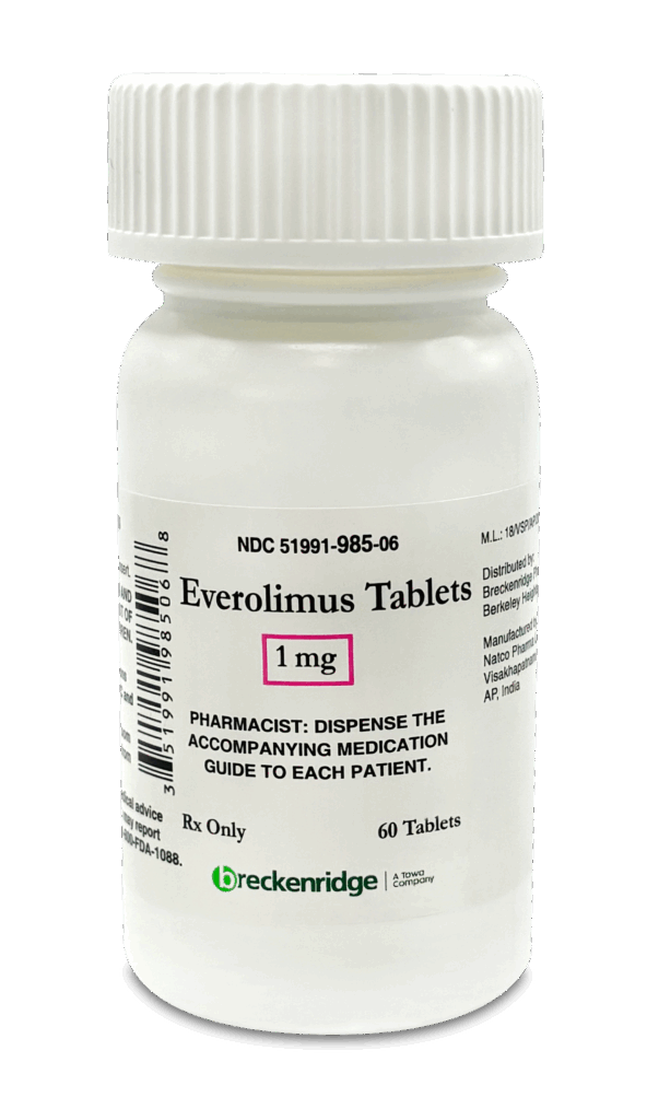 Each strength is available in boxes of 60 tablets (6 blister strips of 10 tablets each) and bottles of 60 tablets. White to off white colored, round, flat shaped tablet ‘EVR’ on one side and ‘N’ on the other side.