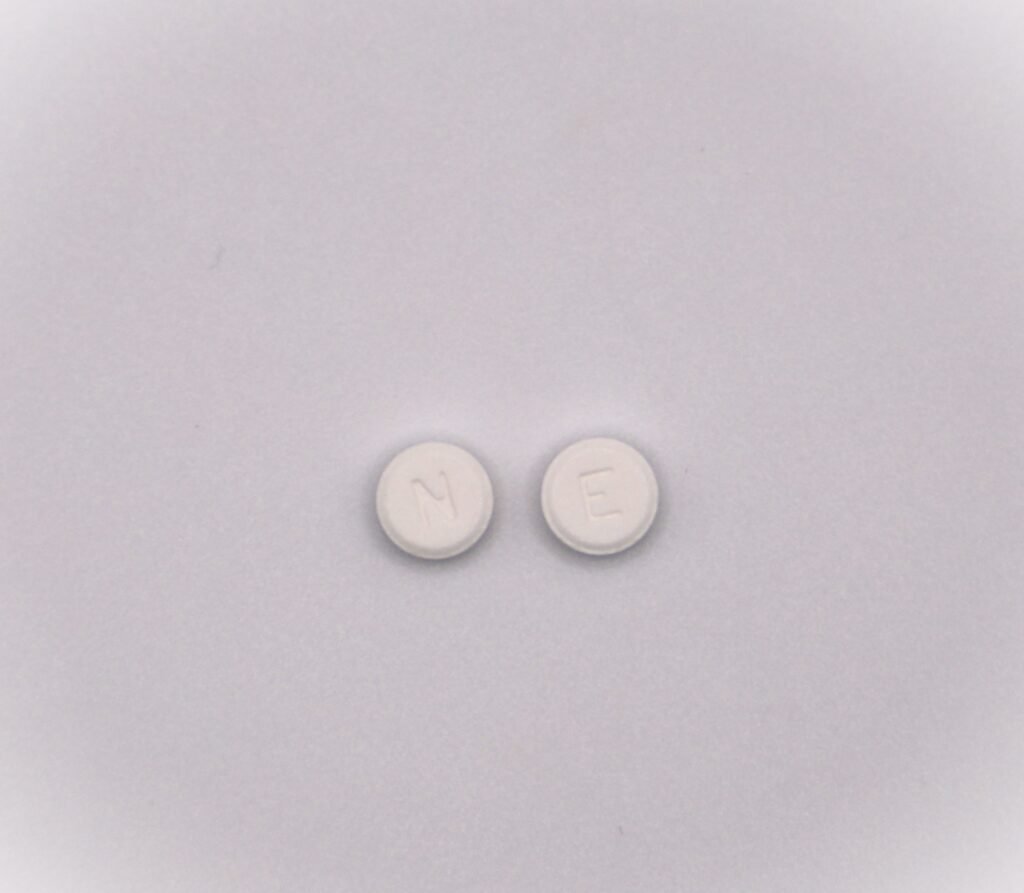 Each strength is available in boxes of 60 tablets (6 blister strips of 10 tablets each) and bottles of 60 tablets. White to off white colored, round, flat shaped tablet ‘E’ on one side and ‘N’ on the other side.