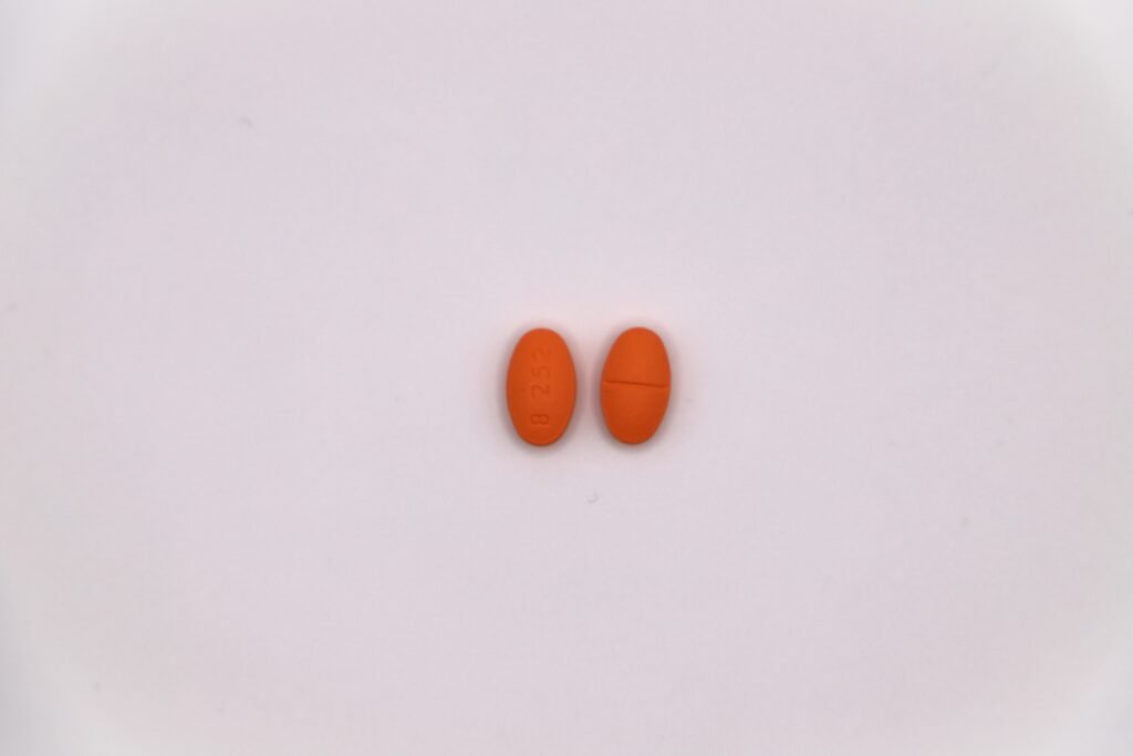 Orange, oval-shaped tablet, debossed B 252.