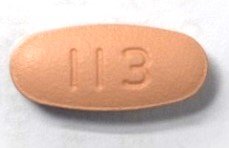 Tan, Oval, Film-coated Tablet. Debossed with “113” on one side and plain on the other side.