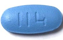 Blue, Oval, Film-coated Tablet. Debossed with “114” on one side and plain on the other side.