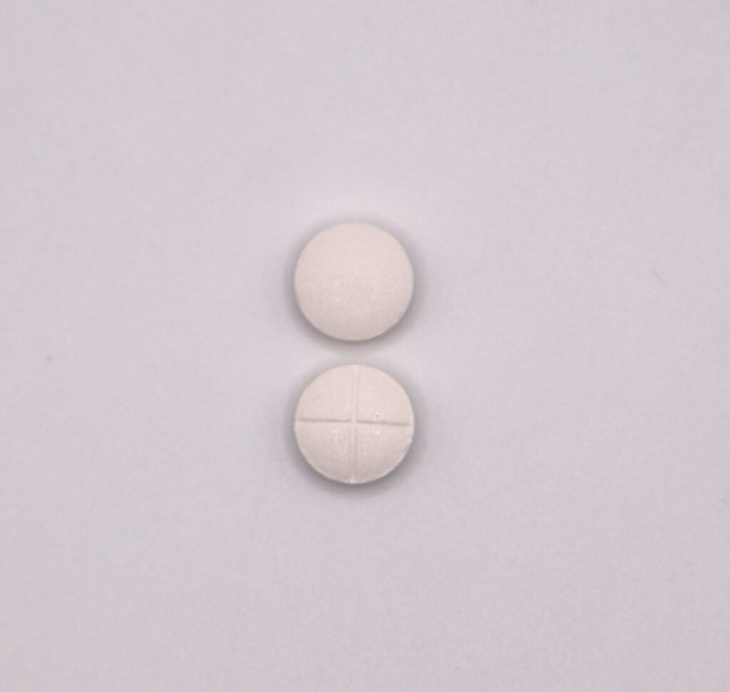 White, round, quadrisected tablet.