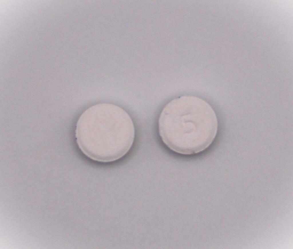 White to Off-white, round, uncoated tablets, debossed “5” on one side and plain on the other side.